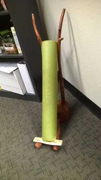 Versión más pequeña de un soporte de guitarra, útil para la celebración de la estera de la yoga. O tal vez de émbolo de aseo.