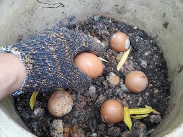 Si tengo un lote de huevos, enterrado a unos cuantos en una olla grande y plantar algún árbol en ella.
