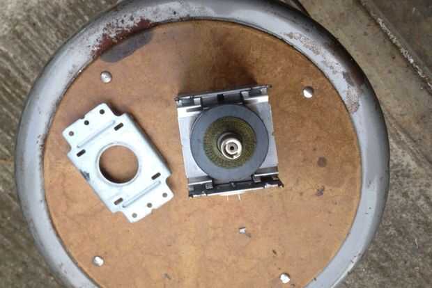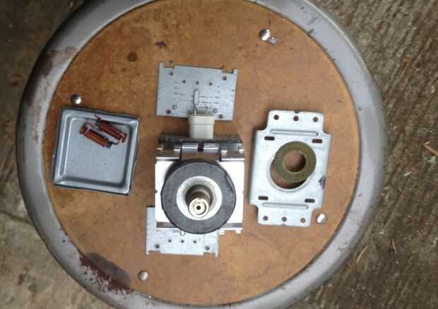 La tercera muestra la unidad con la tapa y los lados y fondo quitado. Las 2 bobinas de cobre provenían de la parte inferior de la unidad.