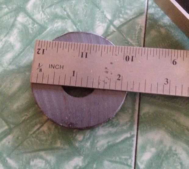 Dos hermosa grande (+ de 2 pulgadas de diámetro) imanes de tierras raras. Los polos están en los lados planos así que usted puede "levitar" uno poniendo los mismos polos uno frente al otro, como mi primera foto.