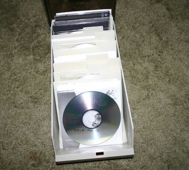 Un CD en un cuadro de papel o un sobre de plástico es del mismo tamaño que un disco de 5,5 pulgadas. Había rayado hasta los contenedores y rescató mi caja de disco flexible de 5,5 pulgadas y ahora tengo una manera aseada agradable de almacenar mis CDs. Incluso apreté unos joyeros demasiado.