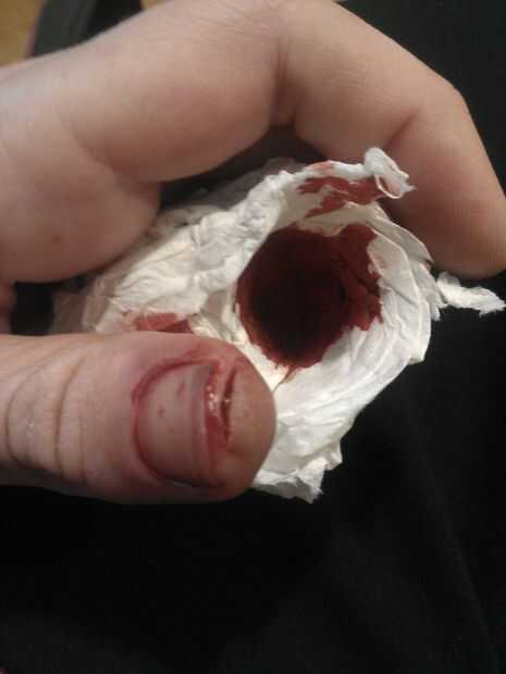 La reacción adecuada es, "Uh... yeah. sí, algo de sangre.