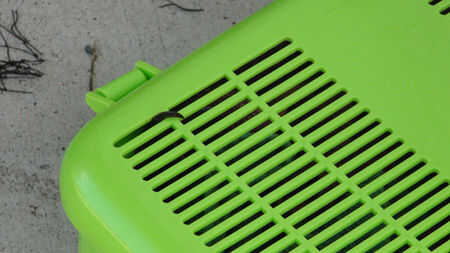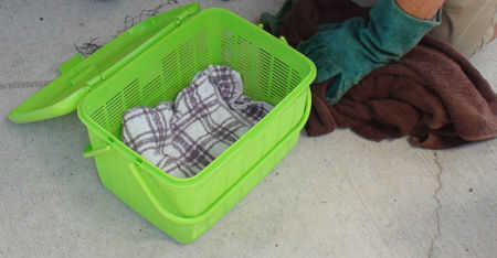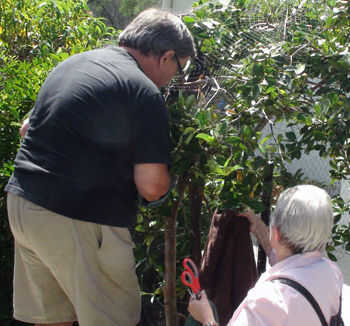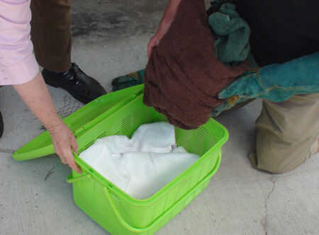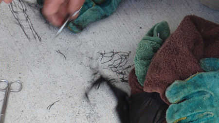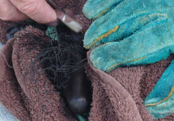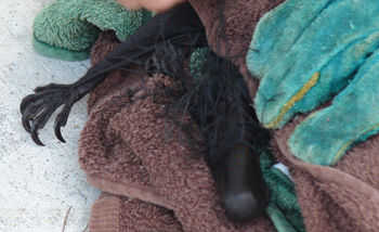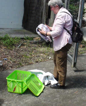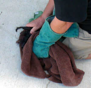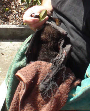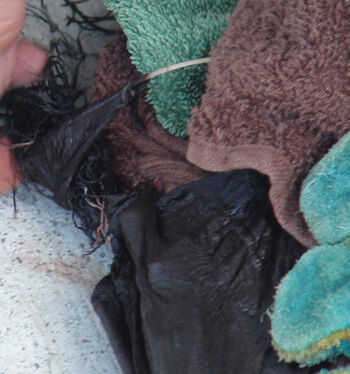 Maneja el bate muy bien y consiguió la mayor parte de la red del bate antes de ponerlo en una caja para transporte al Santuario de la fauna de Currumbin para rehabilitación. (Si usted esta visitando la costa, esta es una visita obligada)