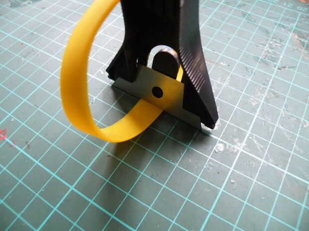 Girar un extremo cortado a través de 180° y el corte de dos extremos, en solamente un lado de la cinta.