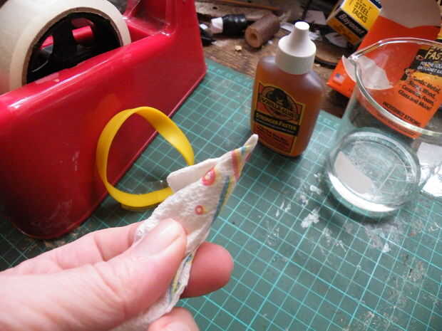 Si usas pegamento gorila *, utilizar un toque de toalla de papel para humedecer ligeramente una cara y otra vuelta de tuerca para aplicar un frotis ligero de pegamento a otro.