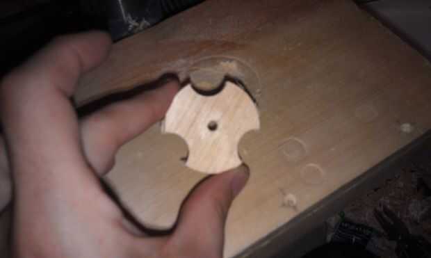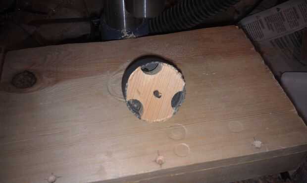 Si la perilla está atascada en el agujero vio que quizás tenga que quitar la Sierra del mandril de taladro para obtener un mejor ángulo. Si todo falla otro que puede tratar de empujar la perilla hacia fuera a través de los agujeros de la sierra que están destinados para que el aire escape durante uso.