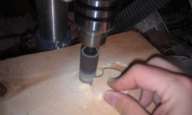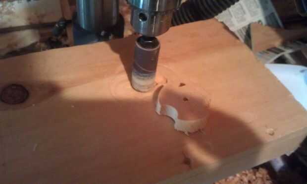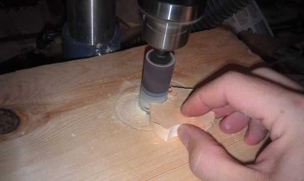 Cambio hacia fuera el agujero Sierra para un 3/4" tambor de lijado. Cuidadosamente empezar a lijar todos los bordes de su mando. El 3/4" tambor de lijado debe adaptarse perfectamente en las ranuras de 3/4" que hiciste con la pieza Forstner.