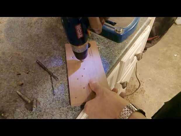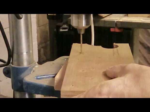 Hacer una cara de madera el camino fácil,Empecé a taladrar un agujero de 17mm a través de un bloque de la playa y una pisada en él con un grifo de acero,Comencé a golpear ligeramente en el taladro para asegurarse de que era todo a 90 gradosPaso 1: Go