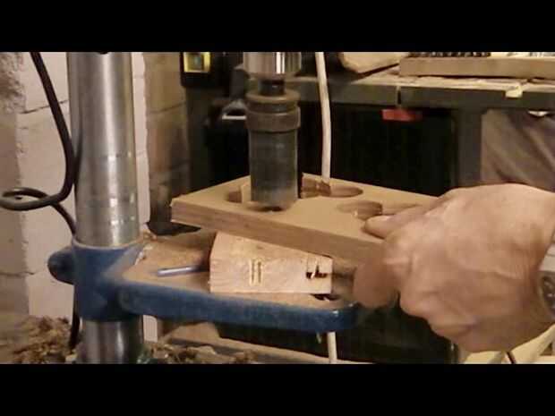 Hacer una cara de madera el camino fácil,Empecé a taladrar un agujero de 17mm a través de un bloque de la playa y una pisada en él con un grifo de acero,Comencé a golpear ligeramente en el taladro para asegurarse de que era todo a 90 gradosPaso 1: Go