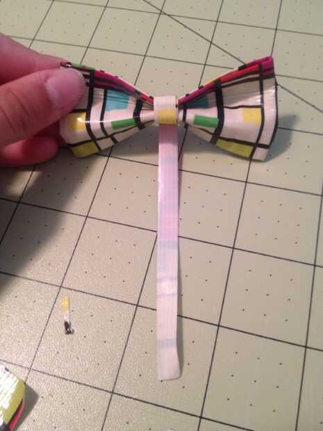 Luego inserte el pasador en las sobras pegajosa y el abrigo son el resto de la tira alrededor de la proa