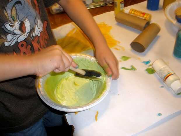 Mi hijo mayor quería ser creativo y mezclar su propio color. Por supuesto dejé a él y que ayuda a que su artículo pintado "suyos."