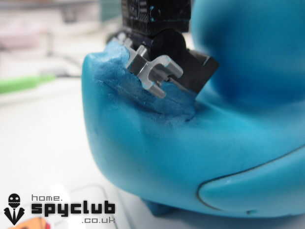 Utilizando la misma filosofía como colocar las piernas, une la minifigura Lego Hawkeye colocando primero de ladrillos planos a la minifigura. Esto significa que cuando luego vengo a este empuje sobre el pato todas las piezas será en el lugar adecuado para la minifgure a ser eliminado, colocado/reemplazado en el futuro.