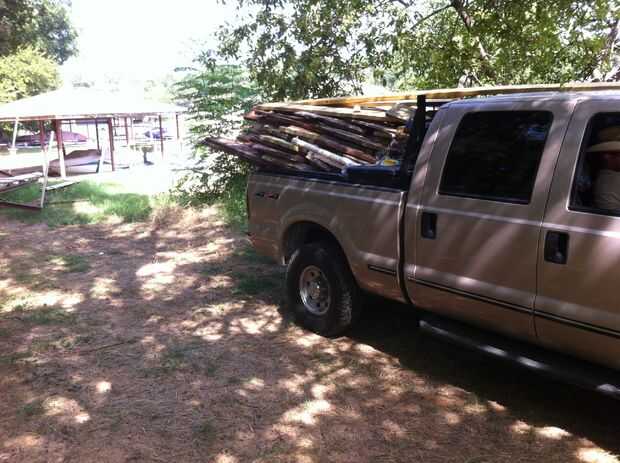 En este caso fui contratado para tarar abajo un viejo muelle para reconstruirla. Debido a un terraplén escarpado no pude conseguir un acoplado a ella, así que puse toda la madera utilizable (roble rojo) en la parte trasera de mi carro.