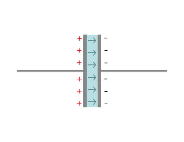 Comenzar haciendo referencia a la segunda foto. Un condensador puede considerarse como dos piezas de material conductor que están muy juntas pero sin tocar. Las dos placas están separadas por un material dieléctrico. Dieléctrico significa no realizar. Ya que no existe ningún camino conductor entre las dos placas, corriente directa (DC) no puede fluir a través del dispositivo. En cambio, carga se acumula en un lado de la placa que causa la carga opuesta en el otro lado. Esto puede parecer familiar porque una batería también tiene un extremo positivo y otro extremo que es negativo. Un condensador puede sostener carga; Puede contener una pequeña cantidad de potencia y energía. Su capacitancia se mide en faradios.