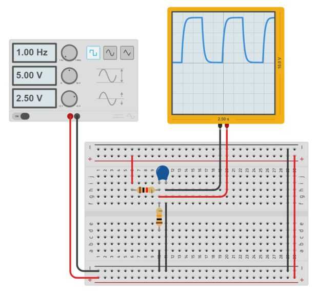 La última foto muestra el voltaje a través de un capacitor cuando se carga y se descarga continuamente.