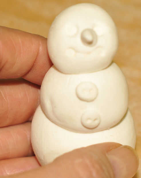 Desplegar una forma pequeña de zanahoria para la nariz y humedézcalo y coloque en el muñeco de nieve.