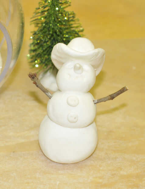 Tomar dos ramitas y presione en los lados de los brazos de crear muñeco de nieve.