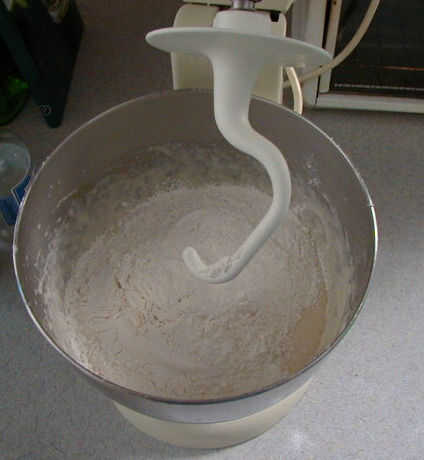 Paso 5: Añadir la harina restante y mezclar con el gancho para masa