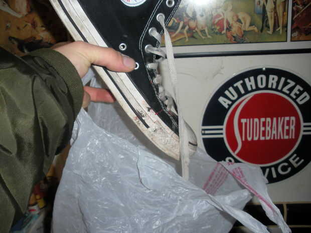 Si tienes zapatos, quitar y poner una bolsa de compras regular sobre cada uno.