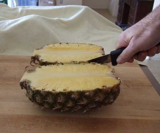 Paso 4: Cortar la piña por la mitad