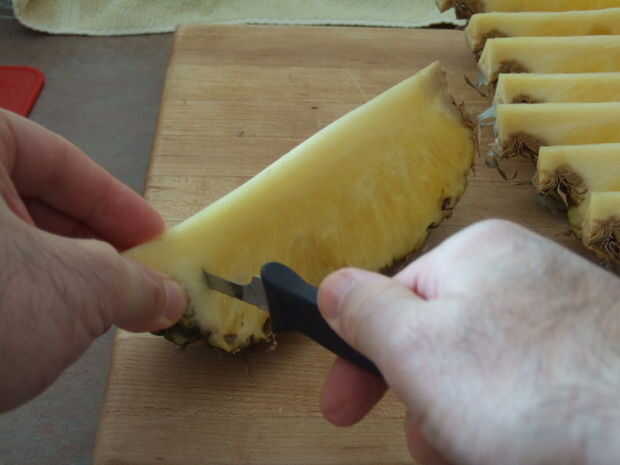 Punta del muchacho de la isla: Introduzca el cuchillo por debajo de la base central y por encima de la piel externa. Este es el secreto para mantener todo junto en este momento. Esto hace mucho más fácil los pasos siguientes. Usted no encontrará este Consejo en ningún otro lugar.