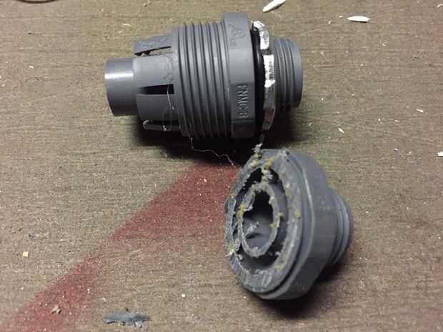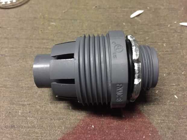 Los conectores de Southwire son útiles en un par de lugares. Tomar cada uno de estos y retire la arandela de goma, la guarnición del tornillo y la tuerca del metal con la mano.