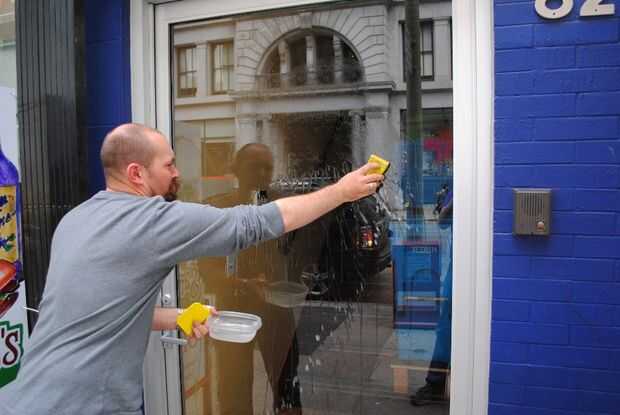 Agua en toda la puerta, utilice la esponja para ayudarle.