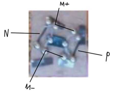 Aquí es el relé que utilizo. ( Corte los cables conectados al motor y conectarlos a la pieza del motor del relé. Conecte los cables etiquetados r en la primera foto, N y P en la segunda foto del relé. (n a p cable negativo al cable positivo) Las líneas negras de la segunda foto son los cables conectar partes de un mismo equipo como en instructible arriba. Luego conecte los cables etiquetados M + y M - a positivo y negativo los cables del motor que se corta.