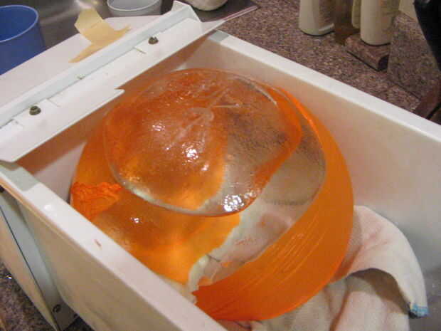 Un crack se forma generalmente en algún lugar de la bola de hielo y agua se escapará del centro. Si no gotea correctamente prueba usando agua caliente para hacer un agujero.