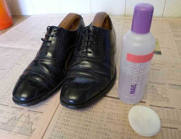 Descargo de responsabilidad-en este punto quiero señalar que estos zapatos son de cuero por lo que la acetona no daña los zapatos (la acetona es un solvente y puede disolver algunos polímeros). Si en duda entonces pruebe una parte del zapato que no es muy visible para asegurarse de que ningún daño se hará por el uso de la acetona (probar la lengua de la zapatilla es una buena idea ya que se oculta sobre todo por lo que si tuviera un efecto en el final entonces no importa tanto). También puede usar alcohol de frotar para quitar el esmalte viejo en lugar de acetona.
