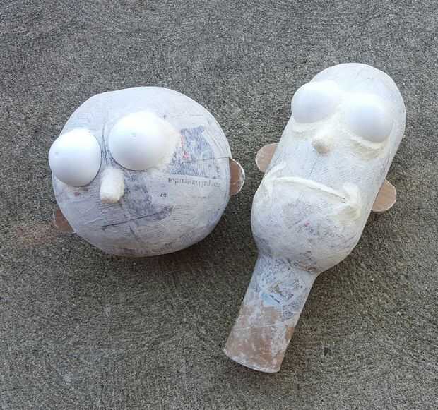 Para la cabeza de Rick hice dos bolas y se unió a ellos para hacer una forma del losanje. Morty es más simple: acaba de encontrar una adecuada tamaño pelota de playa y papel maché. Una vez seco puede guardar la pelota de playa para su reutilización.