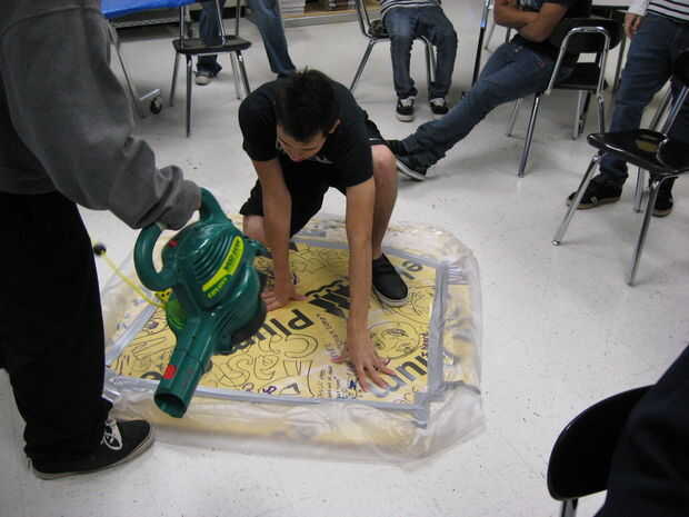 El cuarto y último movimiento es para introducir el hocico del soplador de hojas en el agujero del furgón de cola de la madera. No hacen esto a broma. Una vez que el soplador de hojas se inserta el interruptor de la batalla y observar como tus golpes de soplador de la hoja. Por este tiempo usted verá que su aerodeslizador ha dominado la gravedad y ha logrado de la levitación. Desinflar la nave y cuidadosamente paso a bordo. Una vez que han abordado su barco, inflar una vez más y disfrutar el regalo de vuelo que ha sido recompensado. Mientras se rasga para arriba las ondas de radio, tenga en cuenta que estás atento a sus socios de codo. Actuando sobre la fuerza y empujen adelante, usted creará una ondulación en el continuo de espacio tiempo. Revelando un empuje. Así emerge victorioso. Usan los sujetadores.