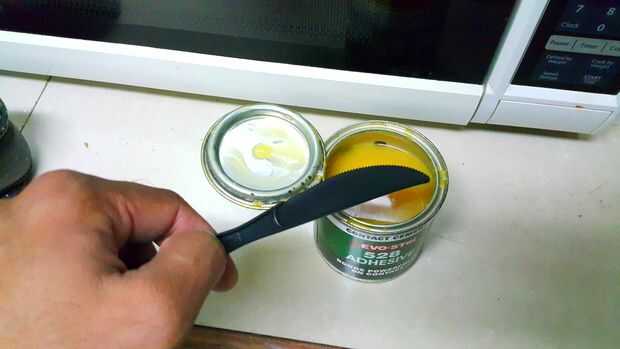 usé un cuchillo de mantequilla plástico para conseguir pegamento a donde sea necesario.