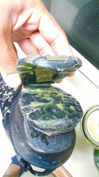 Que se pega detrás de suela de un zapato. (3 / 4 paso)