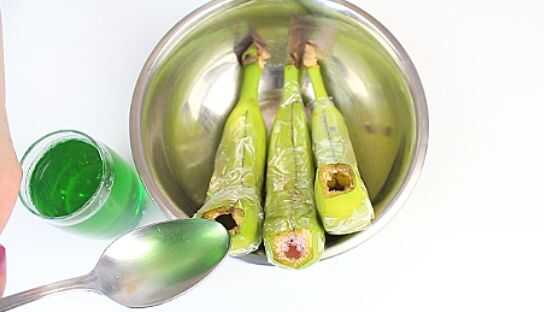 Paso 5: Vierte gelatina en una cáscara de plátano vacío y será necesario a algún tipo de apoyo para sostener los plátanos en su lugar.