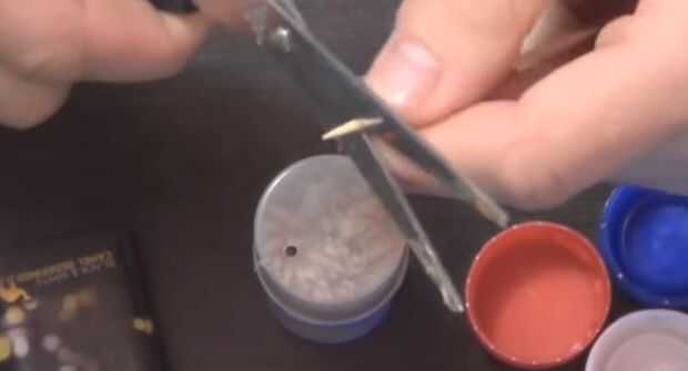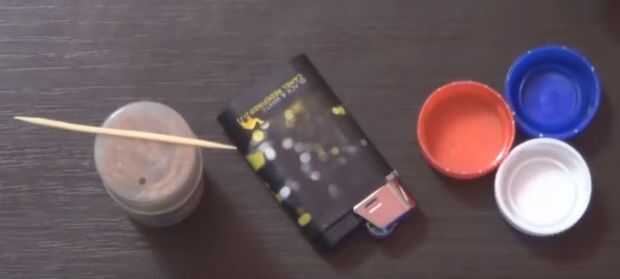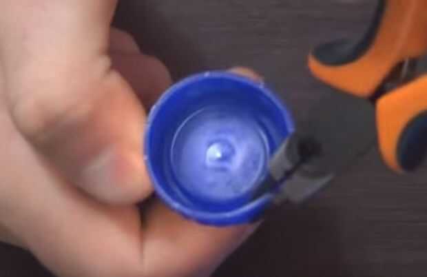 Se muestra cómo modificar un tapón de botella de plástico dentro de una tobera. Se calienta la tapa de plástico de la botella sobre una vela hasta que se vuelve maleable y se puede estirar. A continuación, se empuja un pincho en la parte inferior de