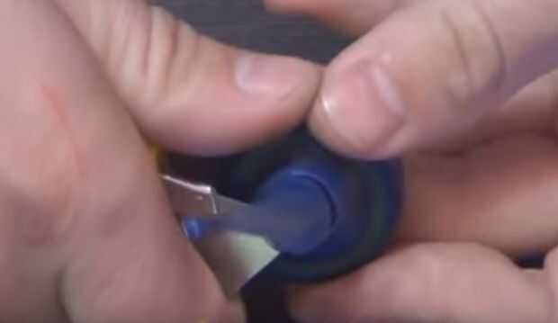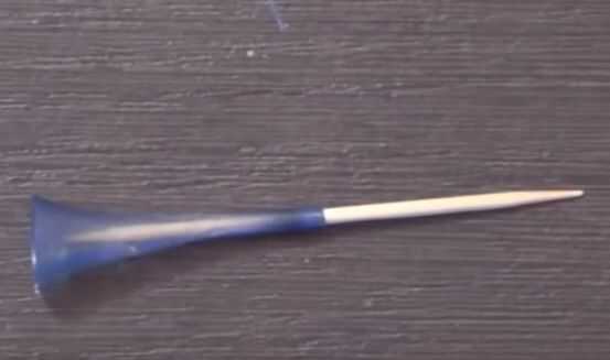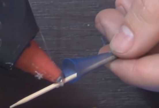 Se muestra cómo modificar un tapón de botella de plástico dentro de una tobera. Se calienta la tapa de plástico de la botella sobre una vela hasta que se vuelve maleable y se puede estirar. A continuación, se empuja un pincho en la parte inferior de