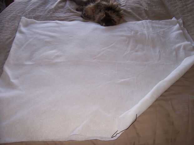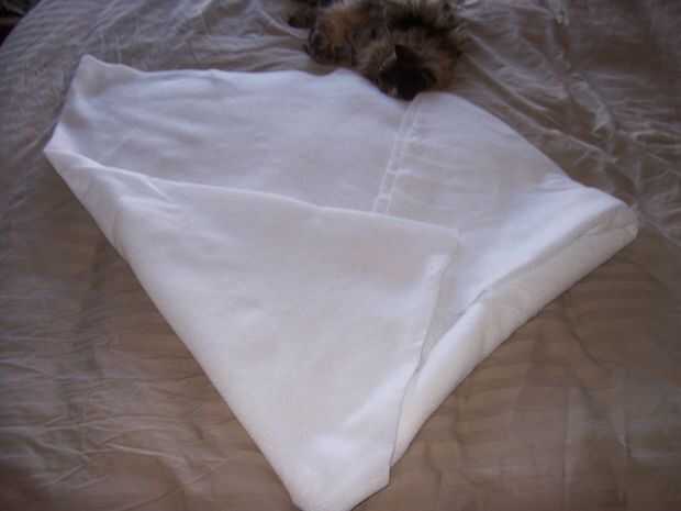 Aplanar el bateo edredón y el perchero en la parte inferior del ángulo. Rodillo sin apretar hasta que los extremos de la percha están cubiertos por el bateo. Llevar los bordes de la guata al centro y continuar rodando - más apretado en la parte inferior y más flojo/fuller en la parte superior.
