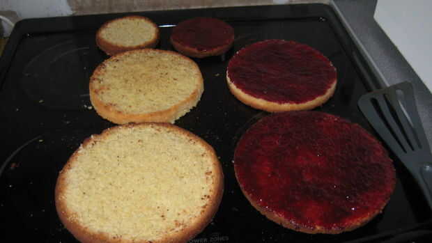 -Utilicé una mermelada de frambuesa relleno, capa en el centro, luego introduzca las mitades superior en.