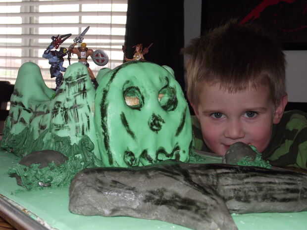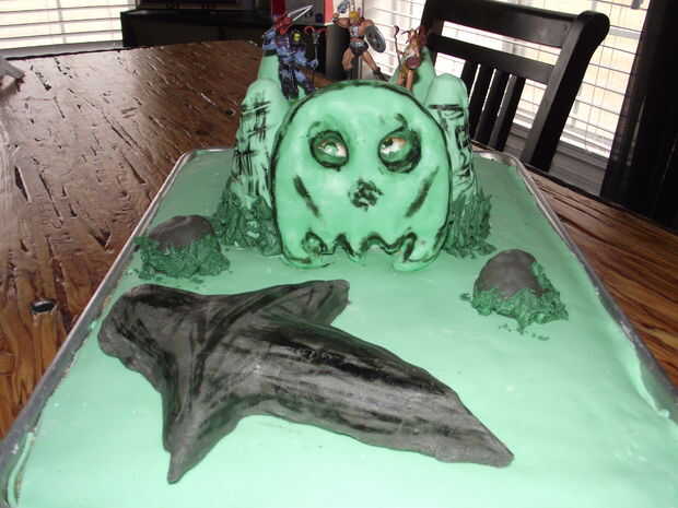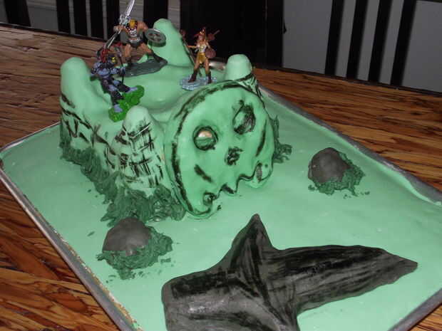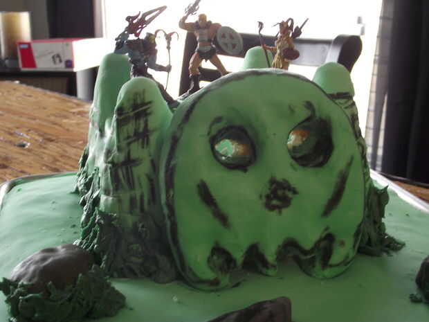 También he añadido he-man, Teela y Skeletor a la parte superior de la torta. Que acabamos sucedieron que entre mi colección de juguetes de maridos.