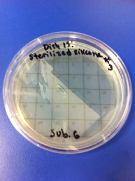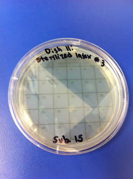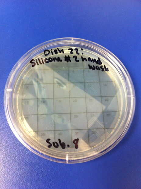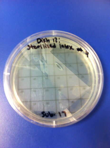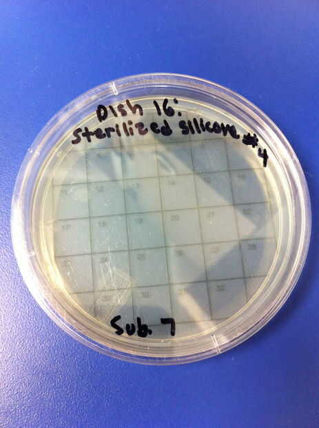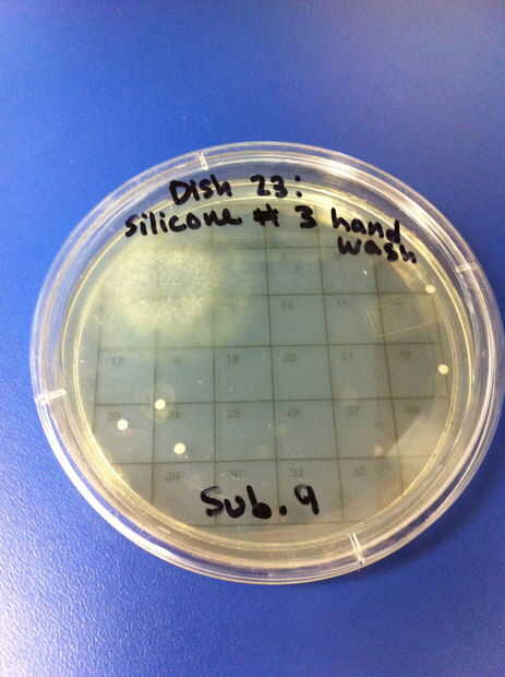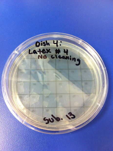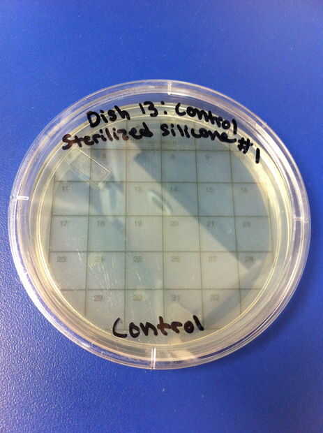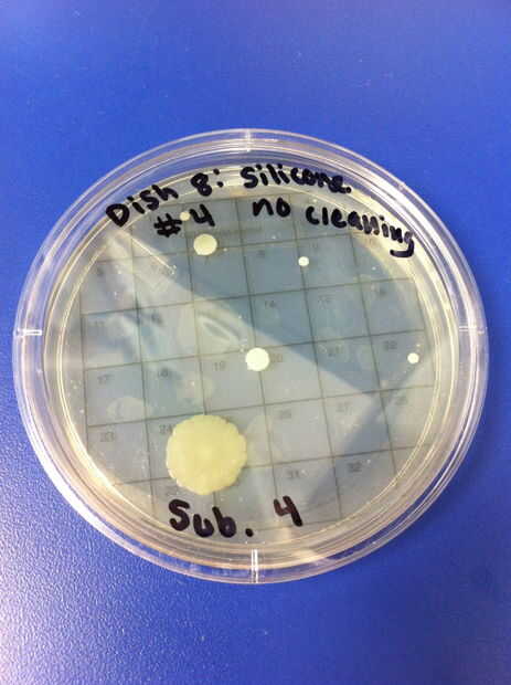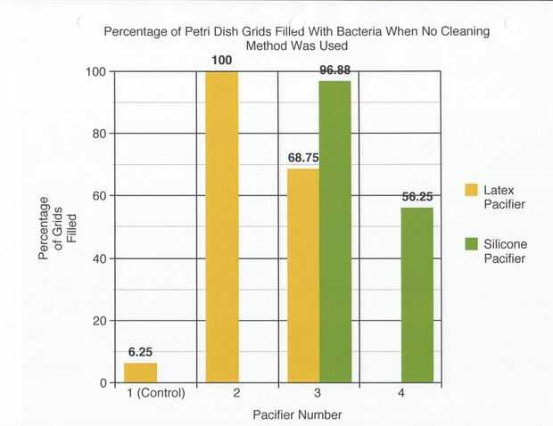 9-12 los ensayos se realizaron utilizando chupetes de látex y el método de limpieza de hervir o esterilizar. El porcentaje de redes de Petri por colonias (de 32) en el chupete de control fue de 0%. El porcentaje medio de las redes de Petri llenada por las colonias (de 32) en el chupete en el grupo experimental también fue 0%. 13-16 los ensayos se realizaron utilizando chupetes de silicona y el método de limpieza de hervir o esterilizar. El porcentaje de redes de Petri por colonias (de 32) en el chupete de control fue de 0%. El porcentaje medio de las redes de Petri llenada por las colonias (de 32) en el chupete en el grupo experimental fue de 0%.