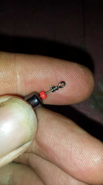 Asegúrese de dejar suficiente espacio para hacer el lazo y envuelve el alambre principal sin todo endurecimiento y bloqueo el señuelo. Otro error fácil hacer cuando tratando de ser muy limpio y cercano y otro error que no he hecho nunca, tos, tos... Si ocurre que hacer esto, simplemente aplastar uno de los granos sin importancia para aflojar cosas para arriba (como en, cualquier grano pero uno debajo de la horquilla).