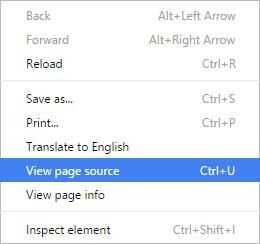 En primer lugar, con el botón derecho de su página web, haga clic en Ver código fuente de página.