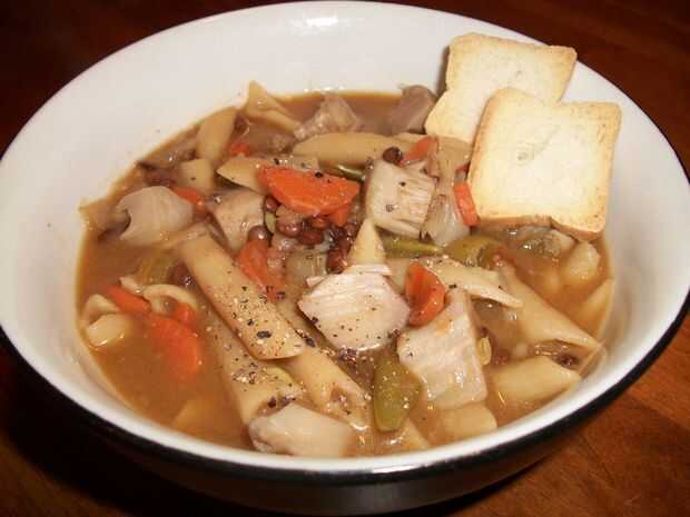 Sopa de pollo pero es realmente la madre de los súper alimentos, ¿no? Se ha demostrado para ayudar realmente a los resfriados, y quería más que yo calmar psicológicamente, así que era hora de un poco de investigación en por qué sopa de pollo ayuda en particular a un resfriado. Según la investigación del Dr. Stephen Rennard MD, el pollo contiene un aminoácido llamado cisteína que se libera cuando se hace la sopa. Este aminoácido se adelgaza la mucosidad en los pulmones, ayudando en el proceso de curación. Así que revisé las listas de nutrición donde descubrí que 100g de pollo contiene 42% de la dosis diaria recomendada de metionina y cisteína (ambos figuran como intercambiables en cartas) y jackfruit sólo contiene 3-8% de la RDR. Sin embargo, también descubrí que buena planta fuentes de cisteína incluyen lentejas (21% para 100g), miso (12%) y las cebollas, pimientos y ajo. Dr Rennard señala también, que las cebollas en sopa de pollo "contienen proteínas, calcio y sobre todo azufre, que disminuye la inflamación y ayuda a reducir la congestión nasal. Otro importante ingrediente de sopa de pollo es zanahorias. Las zanahorias activar nuestro cuerpo producir vitamina A, que fortalece nuestras células blancas de la sangre y a su vez nos permite combatir mejor las infecciones", y"sopas calientes en general ayudan a mantener nasales húmedos y delgada sale moco, evitar dehydation y calmar un dolor de garganta", por lo que"más ingredientes en su sopa, mejor". Con toda esta nueva información, yo estaba listo para hacer mi propia versión vegana de curación caldo de "gallina". No dude en cambiar encima de las verduras basadas en lo que tienes en la mano.