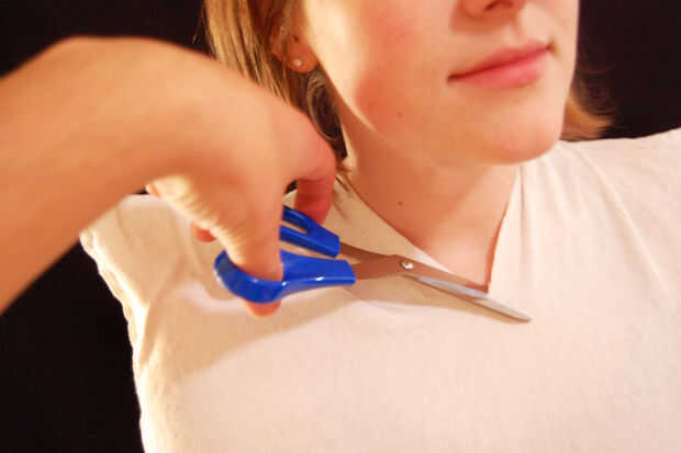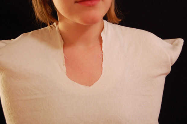 Nota: Si no estás cómodo haciendo los cortes en su cuello mientras usa la funda de almohada, marque con un bolígrafo o lápiz qué corte te gustaría hacer. Luego retirarla y hacer los cortes deseados.