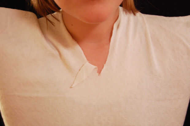 He hecho pequeños cortes que se expandió lentamente el cuello. Siente libre hacer el collar de ninguna manera desea (corto, largo, redondo, cuadrado).