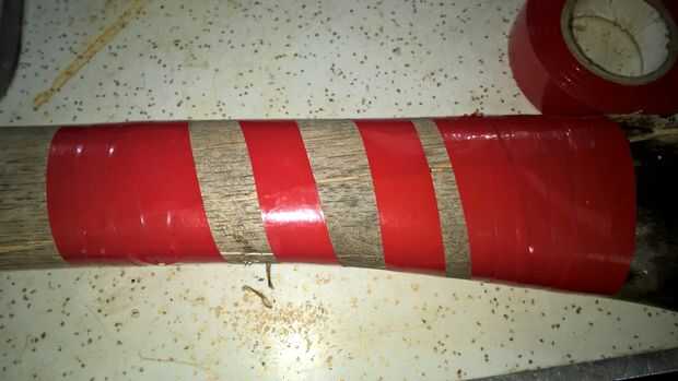Como se puede ver, este mango de cuchillo de maíz ha visto días mejores. Faltaba uno de los remaches y estaba envuelta en cinta aislante para sujetar juntos. El mango está en tal mal forma hizo una herramienta peligrosa. Es definitivamente cierto más