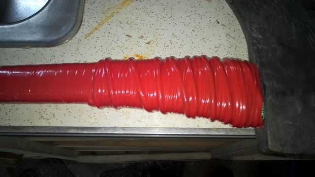 Bueno este es un poco complicado y me disculpo por no tomar una foto del proceso de formacion pero no tengo 3 manos... SIN EMBARGO! Utilicé un tornillo para sujetar un extremo de la cuerda, luego dio vuelta la cuerda alrededor de la manija lo mas ajustado posible. Entonces volví y terminó por atar un lazo alrededor del extremo y anudarlo. Finalmente envuelve una buena cantidad de cinta alrededor de la cuerda y de una fui para picar.