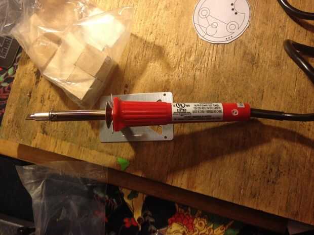Calentar su herramienta y empezar a remontar sobre su diseño. Toma un momento fort él herramienta para quemar la superficie tan ir lentamente y utilizar incluso una presión firme. Sólo tuvimos un Consejo sobre nuestra herramienta así que tuvimos que ir sobre áreas para espesar las líneas y círculos sólidos.