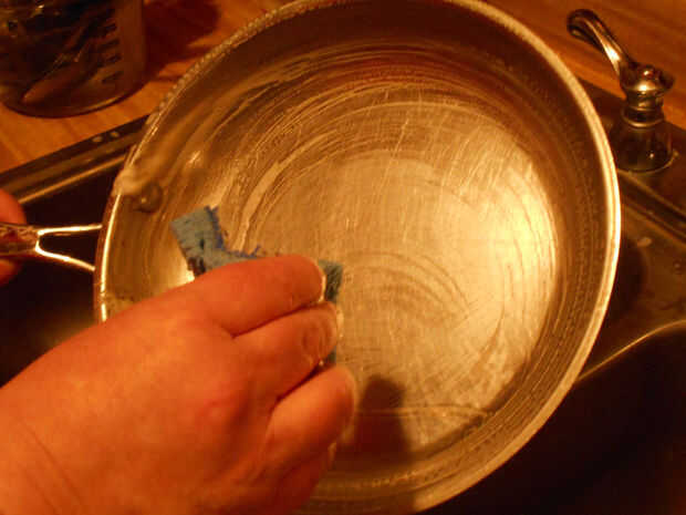 Aquí es cómo limpiar la parte inferior de mis sartenes: con una lijadora de detalles.Echa un vistazo a las fotos, son al menos de 1mm valor de quemar aceite en la parte inferior en unos pocos minutos con la lijadora de detalles. sí, Hah! Es cómo un h